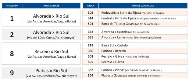 extinta - transcarioca 314 175 Central – Recreio dos Bandeirantes (via Copacabana e Av. das Américas) 11